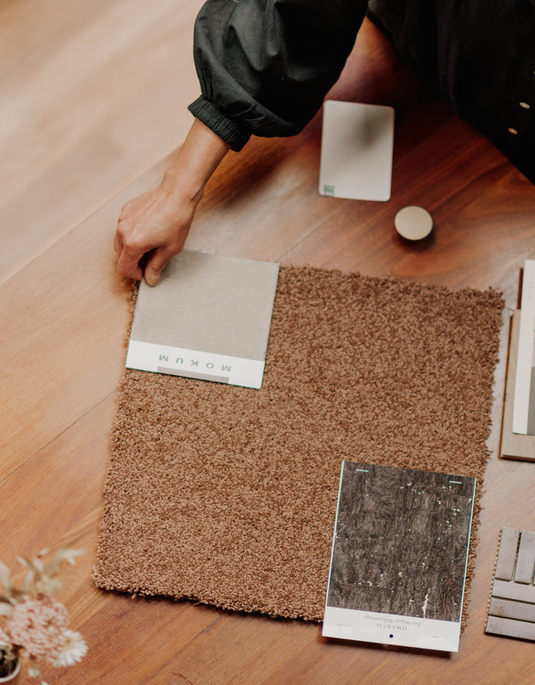 Bremworth designer, Lily Ng, creates a mood board using one of our rug samples together with some décor elements to find the best colour for a hallway rug.
